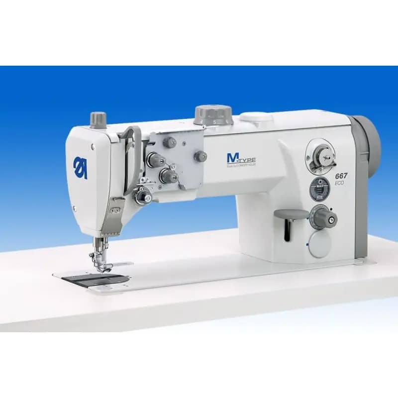 TIP M 667 ECO – jednoigleni industrijski šivaći stroj za ravno šivanje – šteperica (vrsta boda 301) s XXL horizontalnim grajferom i trostrukim transportom za srednje teške do teške materijale