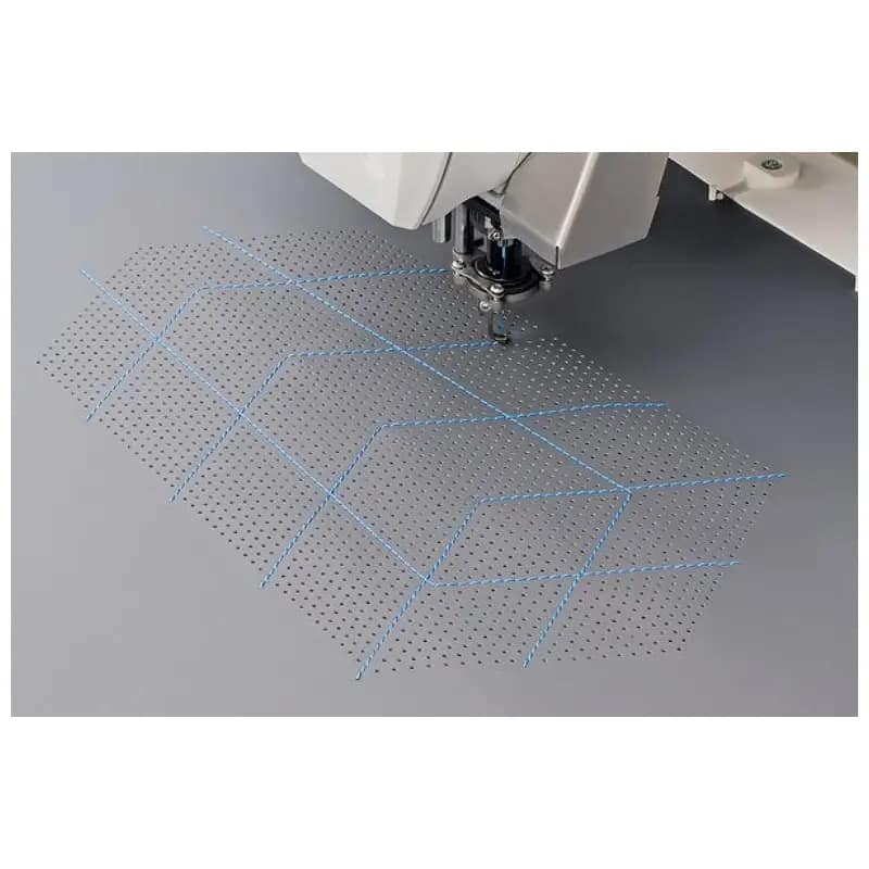 • Također je opremljen elektromagnetskim rezačem konca s kratkim ostatkom konca od 5 mm, rotirajućom mehanikom šivanja, mehaničkim ili elektroničkim uređajem za napetost konca, nadzorom gornjeg konca i preostalog konca na špulici, programabilnom visinom papučice pogonjene koračnim motorom, intuitivnim softverom za upravljanje i programiranje do 200 različitih programa šivanja, motornim namatačem špulice i integriranim hlađenjem igle.