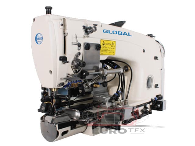 • 1-igleni šivaći stroj s dva konca, zrnčanim bodom, cilindričnim krakom s kontinuiranim iglenim transportom i transportom stražnjim kotačićem prikladan za šivanje donjih poruba na trapericama, kombinezonima itd.