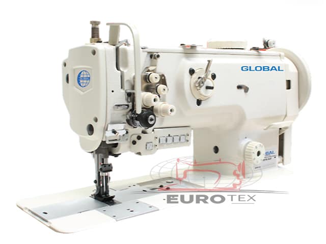 Šivaći stroj s hodajućom papučicom, ravnom radnom površinom, dvije igle, duljinom boda od 9 mm i naizmjeničnim podešavanjem hoda papučice s pomoću kotačića. Stroj je opremljen velikim grajferima s okomitom osi i potpuno automatskim sustavom podmazivanja.