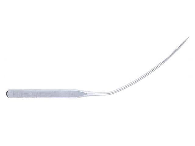 • opis oblika igle: zakrivljena igla s jednom oštricom ravnom na tijelu, a bočno savijenom
