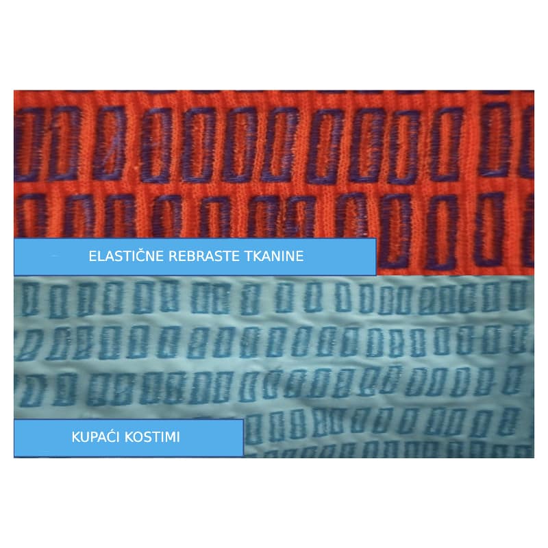 • Za pletene tkanine (K) – zaobljena ploča namijenjena je rastezljivim i pletenim tkaninama, zaobljena papučica smanjuje mogućnost pucanja konca. Prikladan za kupaće kostime i rastezljive rebraste tkanine.
