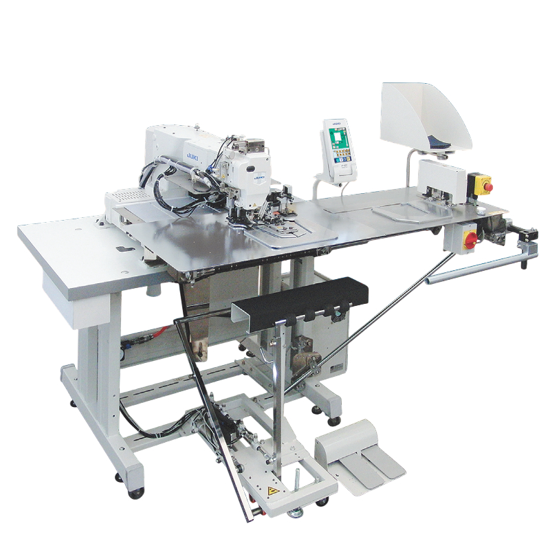 • Ovaj model dizajniran je za šivanje džepova na trapericama s ​​dvobojnim koncem i temelji se na seriji AMS-221EN. Stroj šije presavijenu tkaninu džepova na tijelo odjeće. Savijena odjeća s džepovima može se izraditi s pomoću stroja za formiranje JEUX0021. Ova dva stroja rade u savršenoj kombinaciji.
