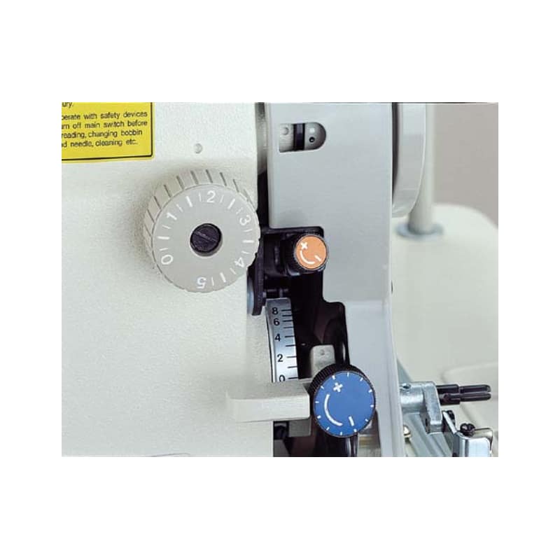 • Industrijski šivaći stroj za ravno šivanje – šteperica: 1 igla, zrnčani bod, s donjim i promjenjivim gornjim transportom te uređajem za kontrolu nabiranja.
