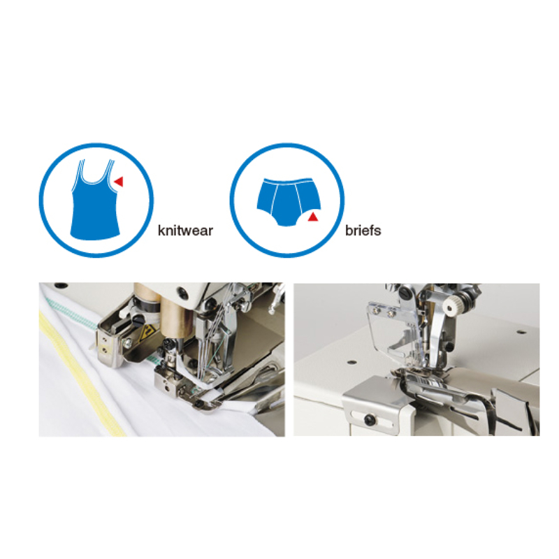 • Opremljen s mnogo različitih mehanizama povezanih sa šivanjem koji doprinose poboljšanoj kvaliteti šavova kao što je novi mehanizam za transport i mehanizam za mikropodešavanje diferencijalnog transporta. Osim toga, stroj je standardno opremljen mehanizmom za sprječavanje uvijanja konca petljača za bolje održavanje.