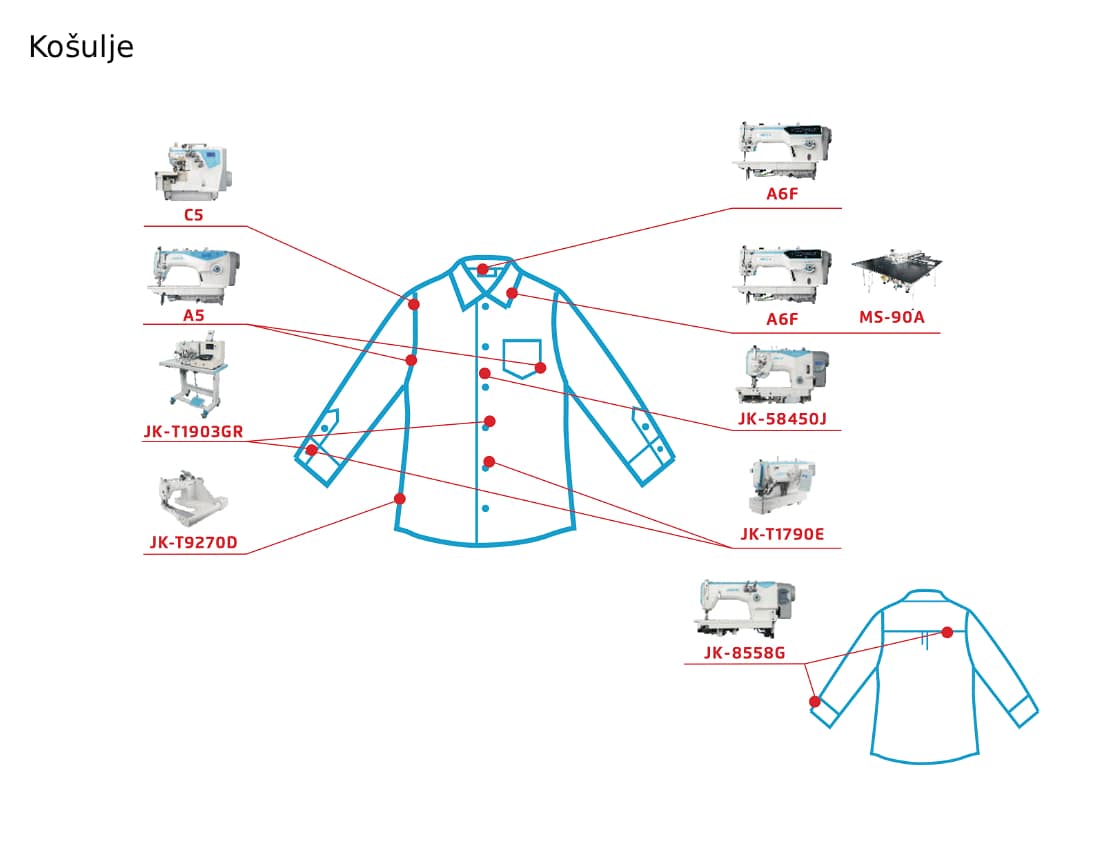 Pozicija na košulji Stroj Vrsta šava / operacija