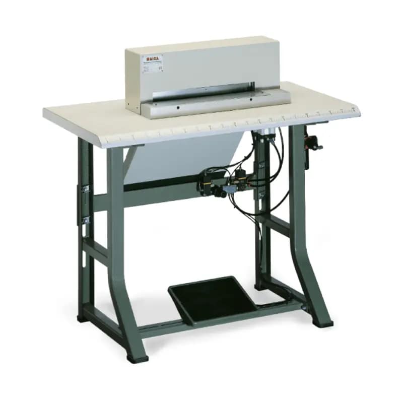 Ovaj pneumatski uređaj posebno je dizajniran za precizno i brzo rezanje bilo kojeg tipa ovratnika prije njegovog pričvršćivanja na traku. Opremljen je s više referentnih točaka koje se mogu mijenjati ovisno o obliku ovratnika.