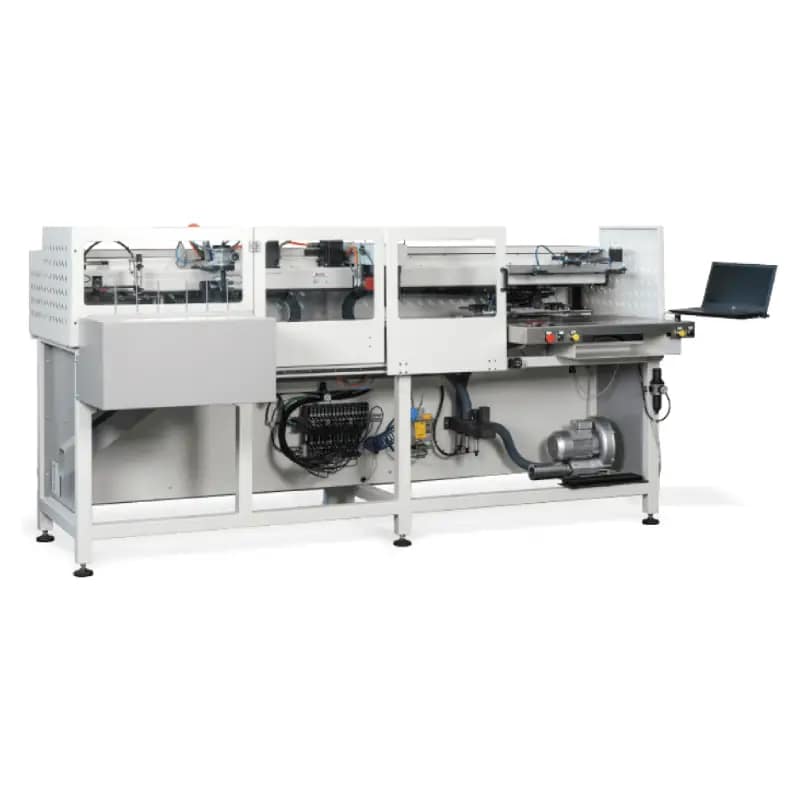 • Ovaj je stroj jedinstveni potpuno automatizirani sustav koji omogućuje šivanje ovratnika i manšeta s pomoću patentiranog stroja za šivanje s čvorastim bodom. Komadi se također automatski režu i slažu.