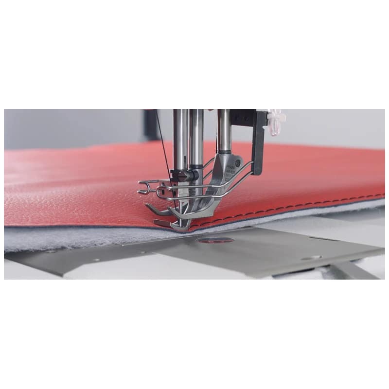 • Automatske funkcije: rezač konca, automatsko podizanje papučice i učvršćivanje šava upravljani su elektropneumatski, kao i brzo stupnjevito podešavanje gornjeg transporta, druga napetost konca i brzo podešavanje druge duljine boda.