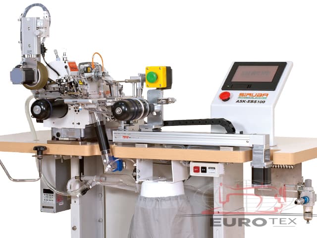 Moderan automatski stroj dizajniran za našivanje gume na struk s pomoću obamitanja. Stroj prihvaća prethodno sašiven gumeni prsten osiguravajući ravnomjernu napetost na cijelom opsegu pojasa. Uloga rukovatelja svodi se na nanošenje pripremljenog remena na zatezne valjke, postavljanje remena na radno područje i pokretanje stroja. Napetost i međusobno pozicioniranje materijala kontrolira senzorski sustav i ne zahtijeva nikakvu intervenciju rukovatelja.