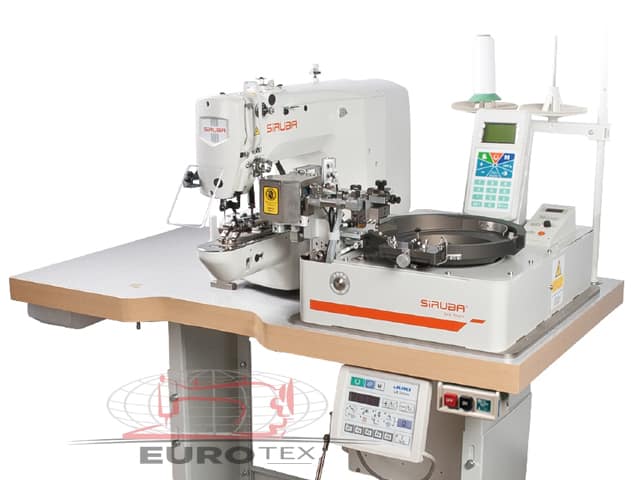 Elektronički stroj za šivanje gumba s dva konca s automatskom hranilicom gumba. Pogodan za šivanje ravnih gumba. Upotreba zrnčanog boda osigurava trajno pričvršćivanje gumba, bez rizika da slučajno ispadnu. Stroj je opremljen glavom stroja za šivanje gumba LKS-1903AN (proizvedeno u suradnji s Jukijem).