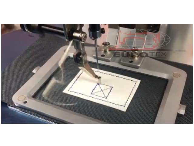 Stroj s programibilnim šivaćim poljem za šivanje 80 x 60 mm za šivanje opetovanih uzoraka, tj. šivanje naljepnica, čičak-traka, pričvršćivanje gurtni itd. Opremljen internom pritisnom papučicom za sprječavanje kidanja materijala prilikom šivanja.
